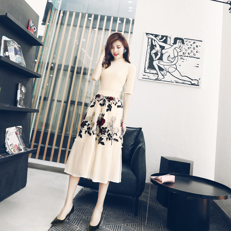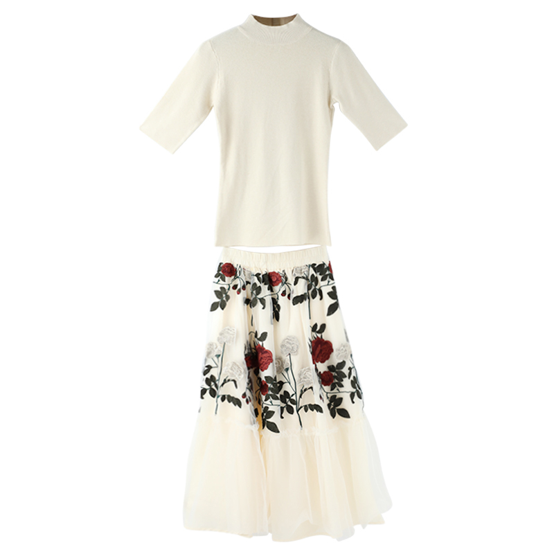 / 歐洲站名媛氣質針織紗半裙七分袖兩件套連衣裙女秋2018新品