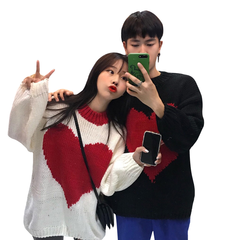 / 秋冬韓版寬松慵懶風休閑愛心情侶款網紅套頭針織衫毛衣上衣外套女