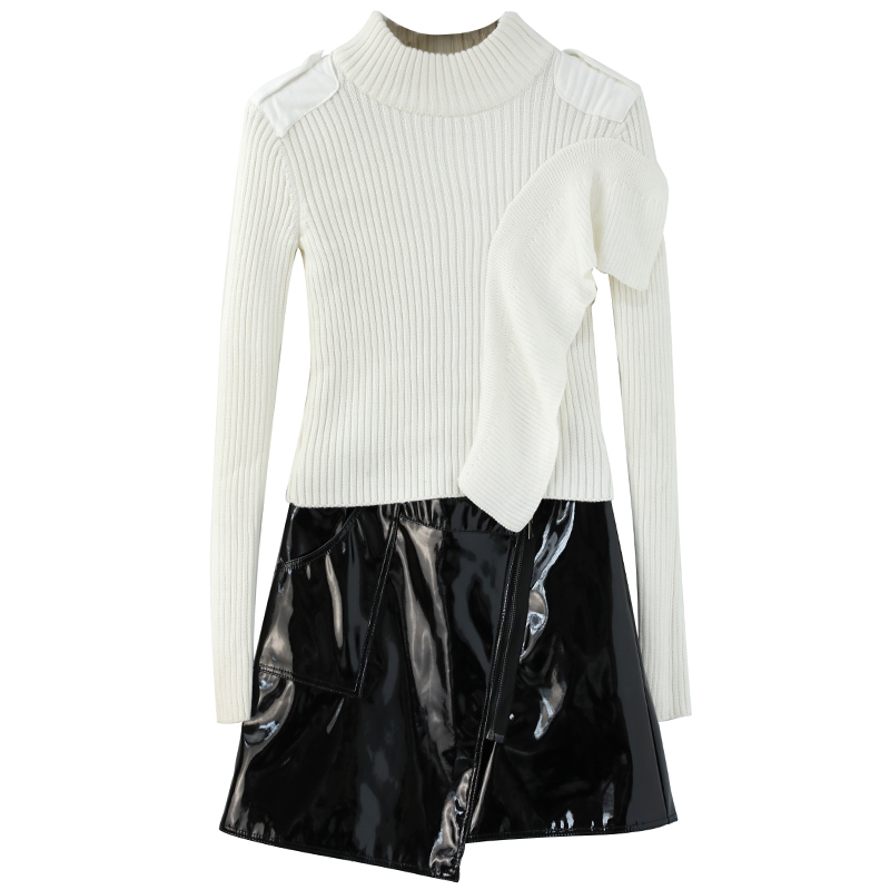 名媛氣質2018秋冬季女裝網紅女神時尚毛衣性感亮皮裙套裝女兩件套