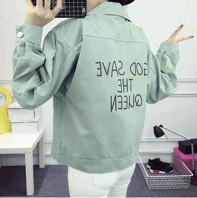 2016春秋季新款韓版原宿風bf字母印花外套女寬松大碼風衣學生女潮