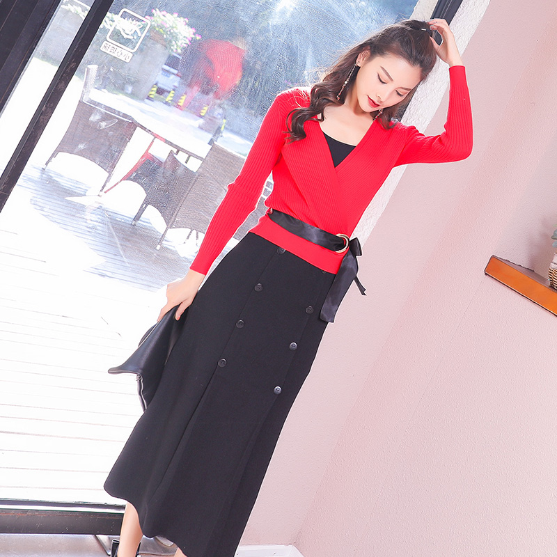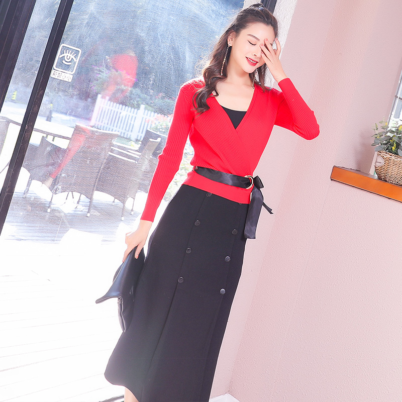 / 名媛時髦兩件套女裝秋冬2018新款長袖針織衫中長半身裙氣質套裝潮