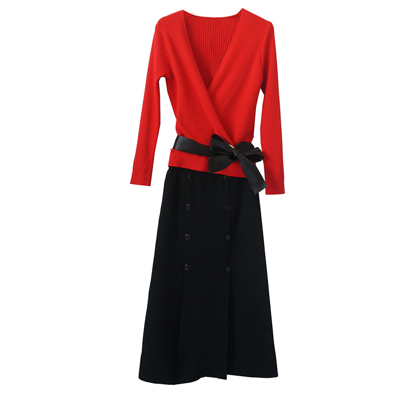 名媛時髦兩件套女裝秋冬2018新款長袖針織衫中長半身裙氣質套裝潮