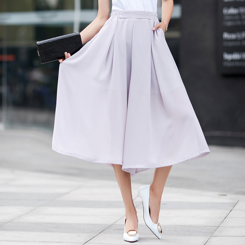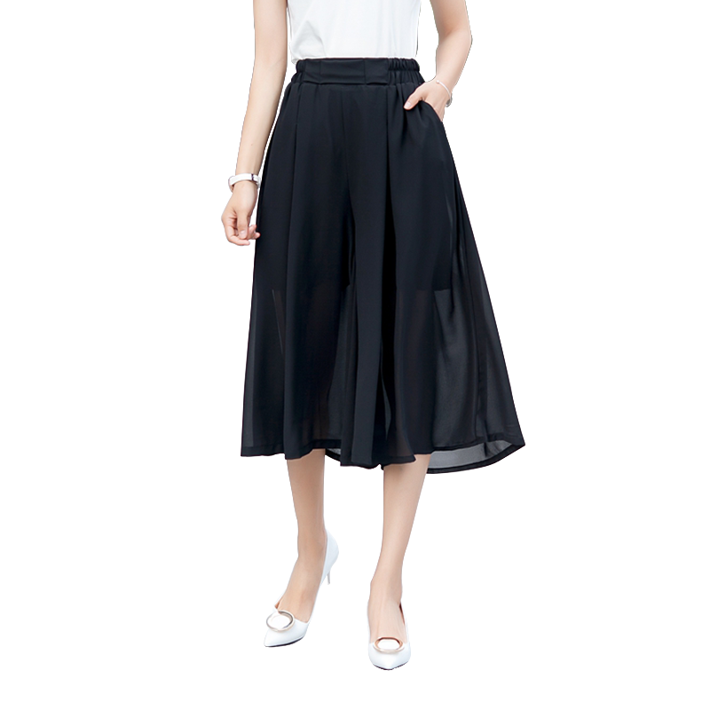 / 七分闊腿褲夏季女高腰韓版學生顯瘦春裝新款雪紡直筒寬松褲子