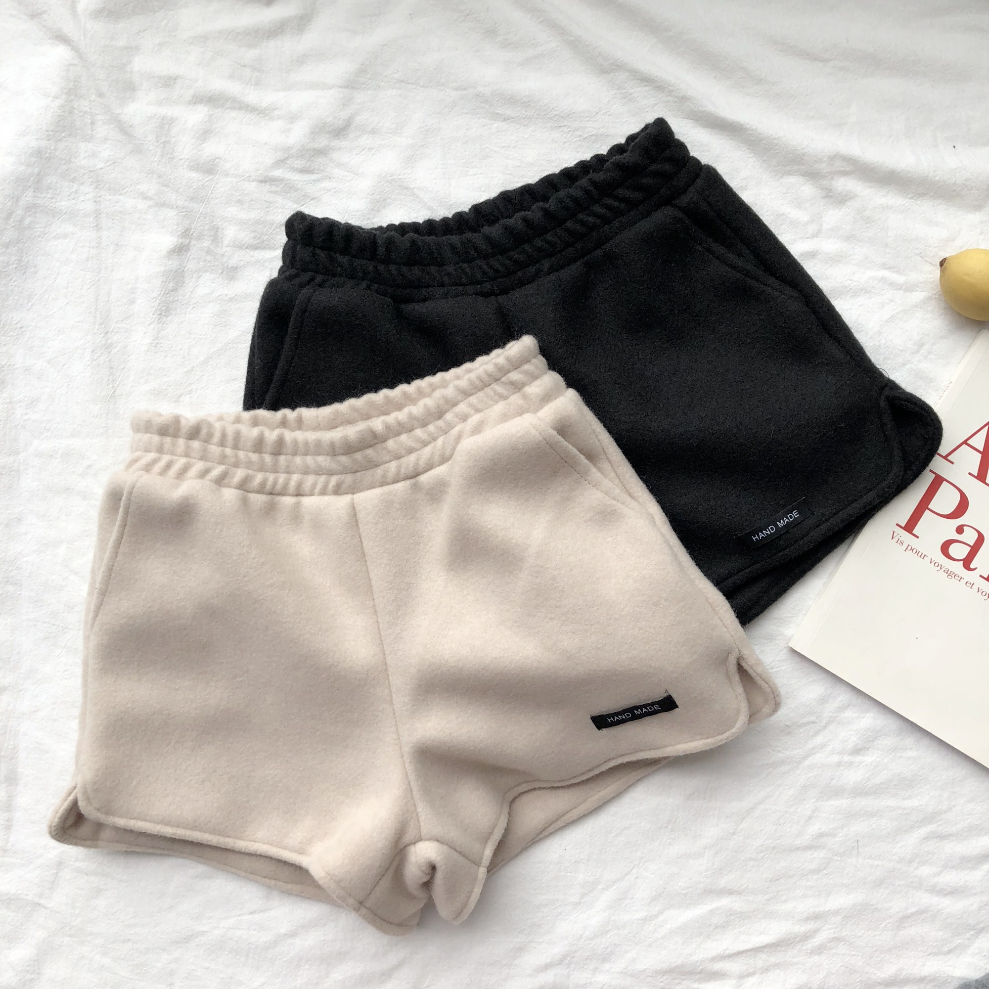 / 褲子女新款韓版百搭加厚毛呢寬松短褲松緊腰褲高腰直筒褲闊腿褲潮