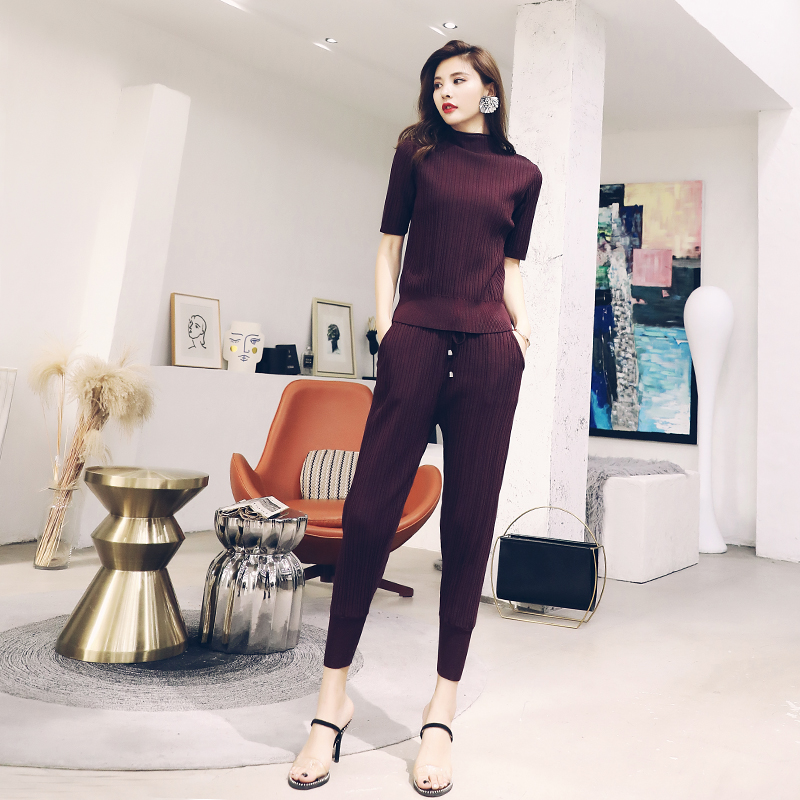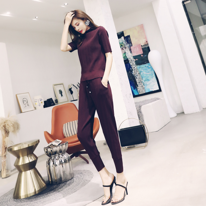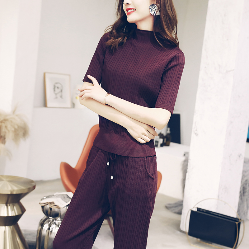 針織套裝女夏2018新款韓版短袖七分褲顯瘦網紅復古俏皮時尚兩件套