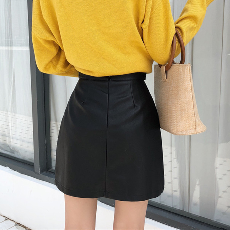 / 秋季新款女裝韓版PU皮裙女高腰a字半身裙氣質修身顯瘦包臀短裙子