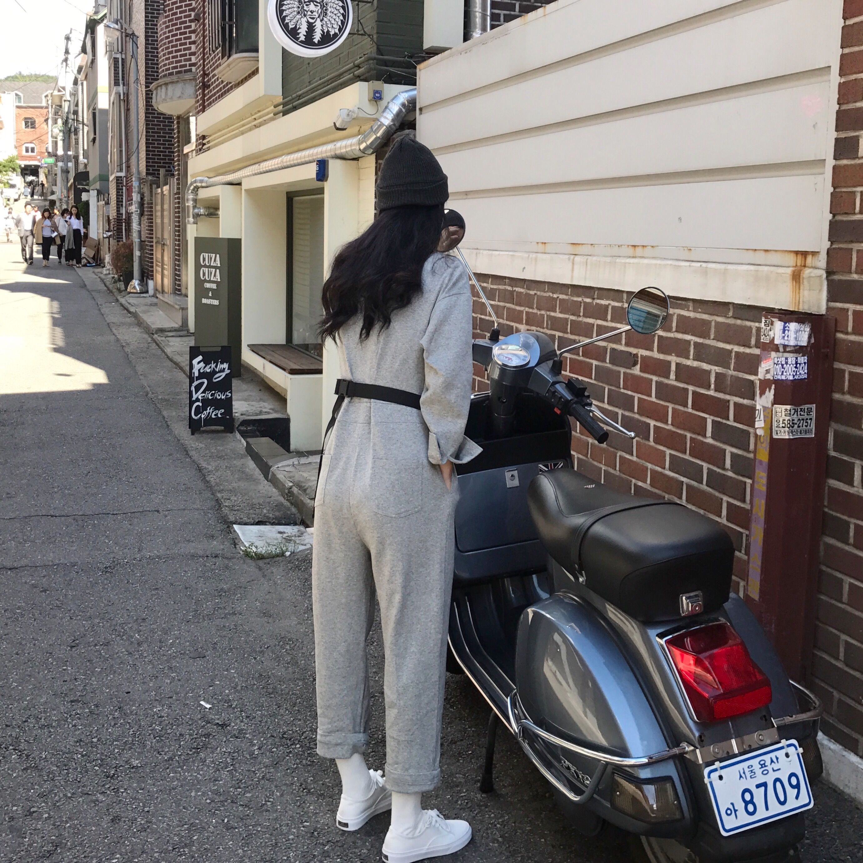 / 氣質polo領工裝顯瘦長袖衛衣料連體褲休閑褲女秋冬2018新款長褲潮