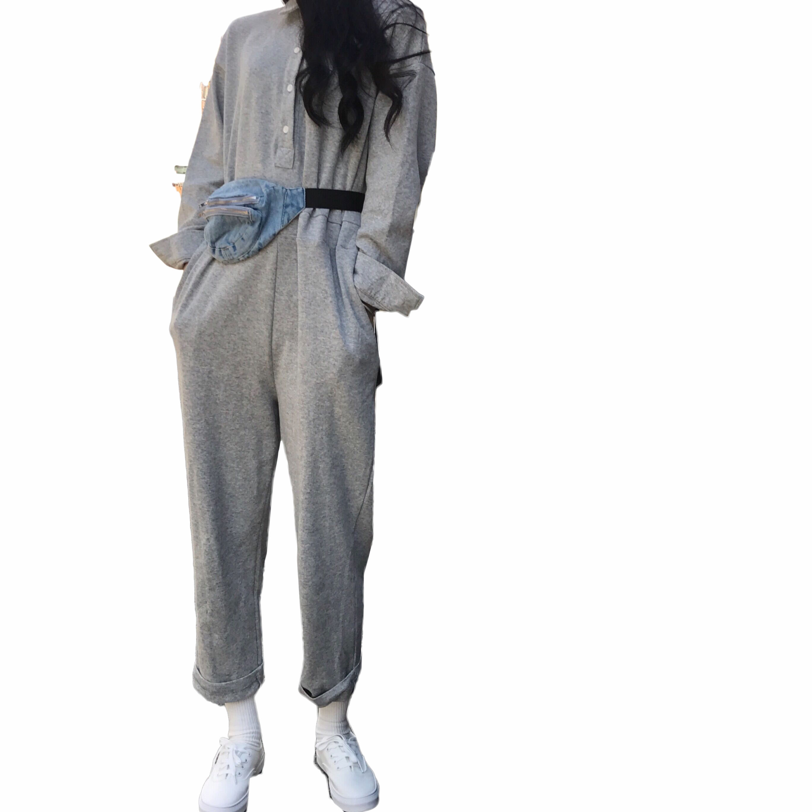 氣質polo領工裝顯瘦長袖衛衣料連體褲休閑褲女秋冬2018新款長褲潮