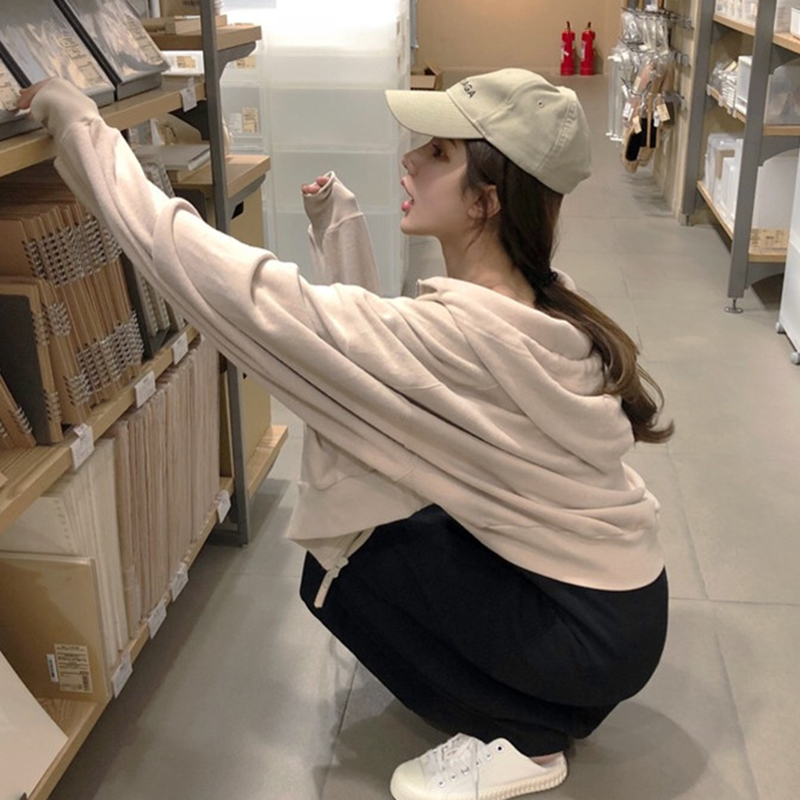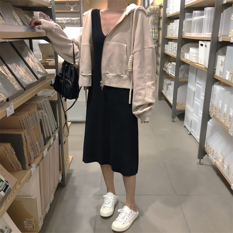 / 套裝女秋新款兩件套寬松長袖連帽衛衣黑色針織背心連衣裙子兩件套