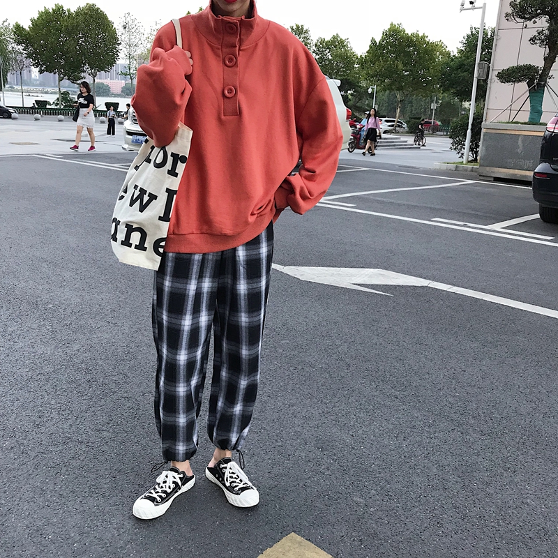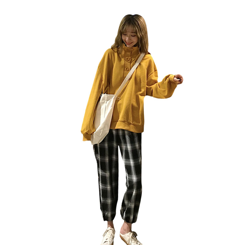 / 韓版時尚休閑套裝秋季女裝寬松長袖衛衣+格子哈倫褲九分褲兩件套