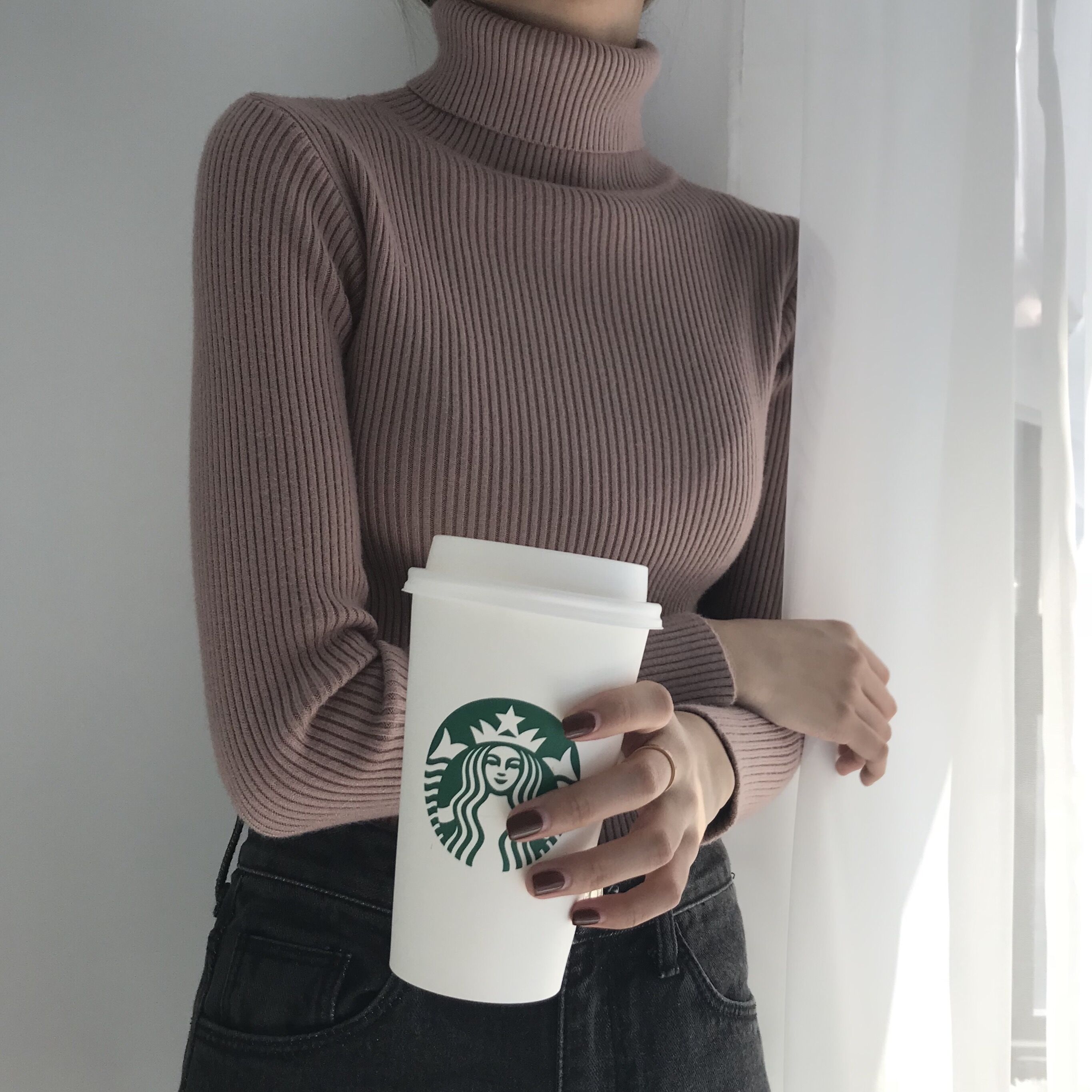 韓版chic早秋針織衫網紅毛衣女慵懶風高領百搭修身加厚針織打底衫