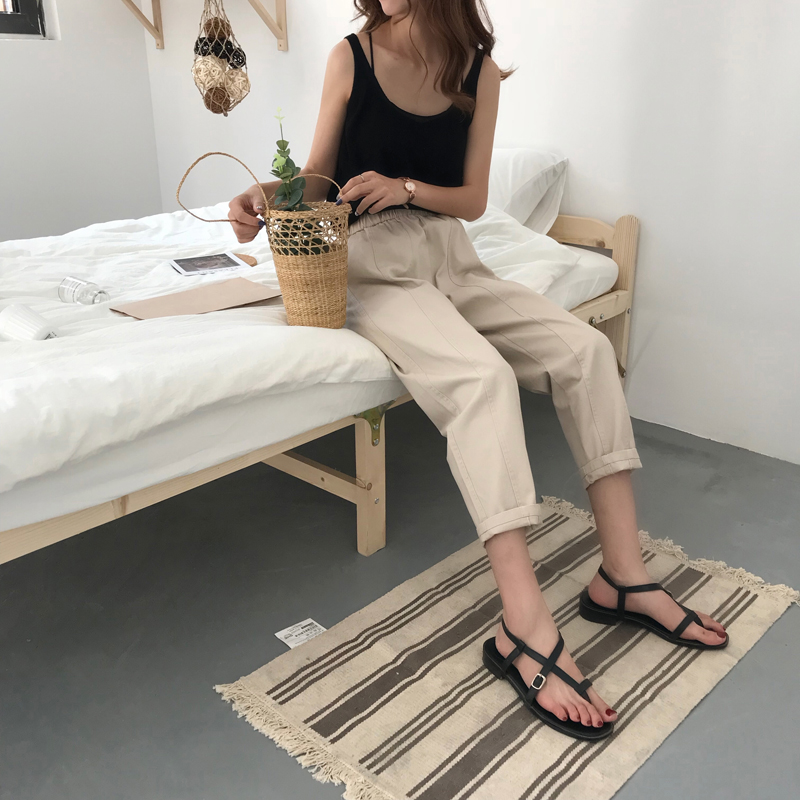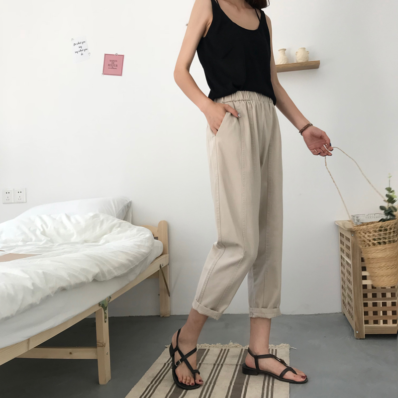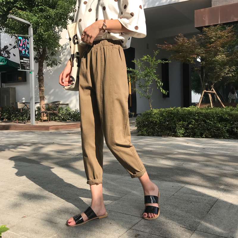 / 夏季女裝韓版寬松純色松緊腰蘿卜褲哈倫褲高腰顯瘦九分褲休閑褲潮