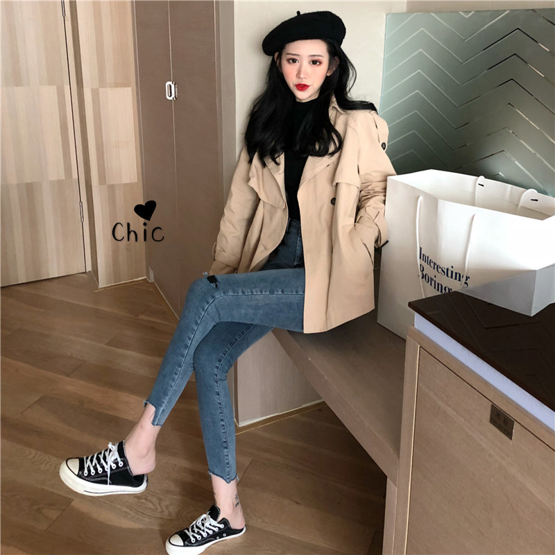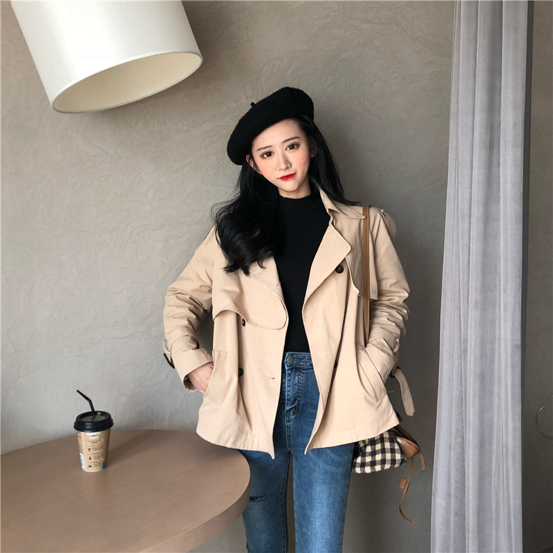chic早秋外套風衣時尚復古經典休閑韓版lulu風衣短款百搭短外套潮