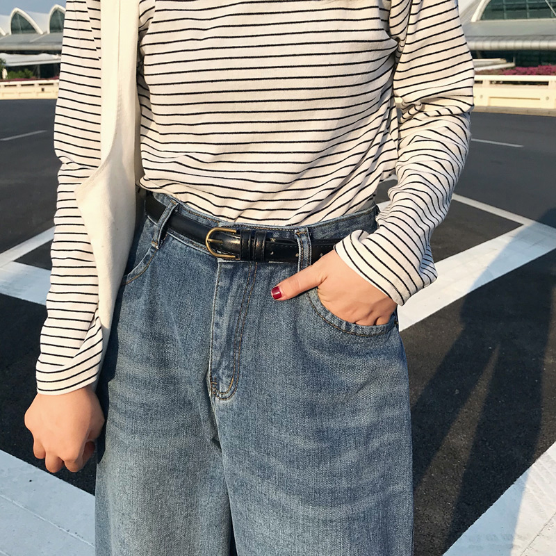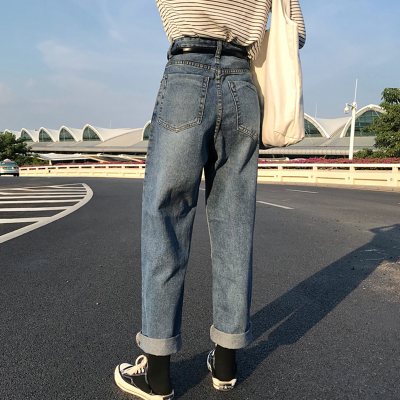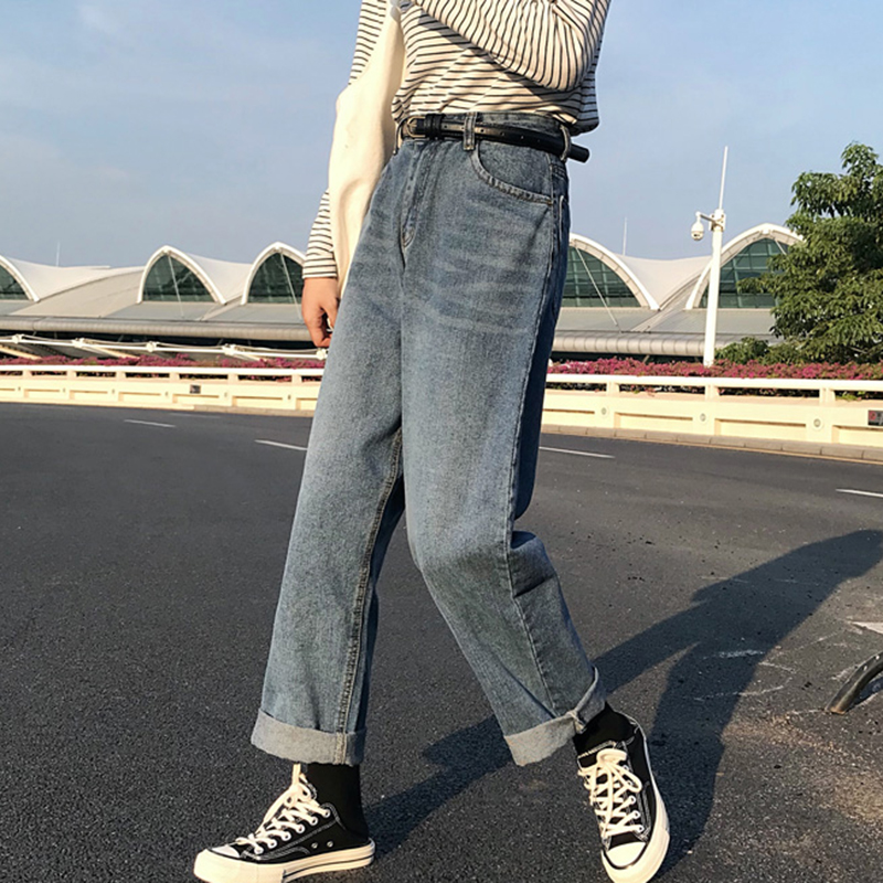 秋裝女2018新款女裝寬松高腰直筒褲學生休閑闊腿褲復古牛仔長褲子