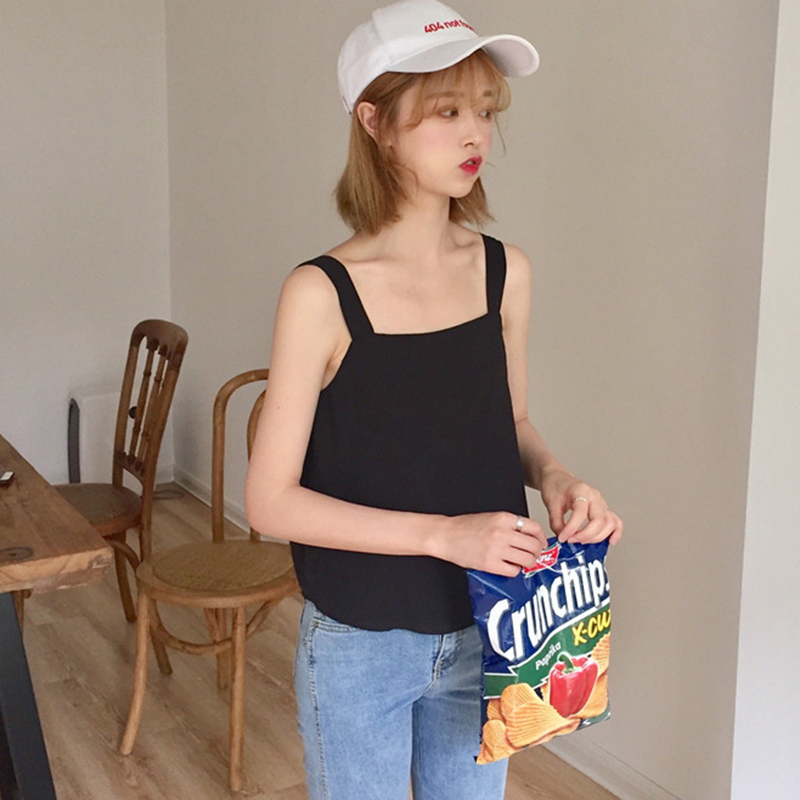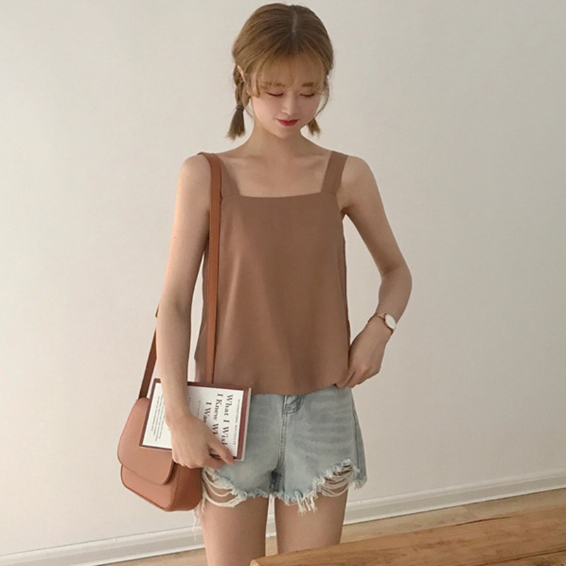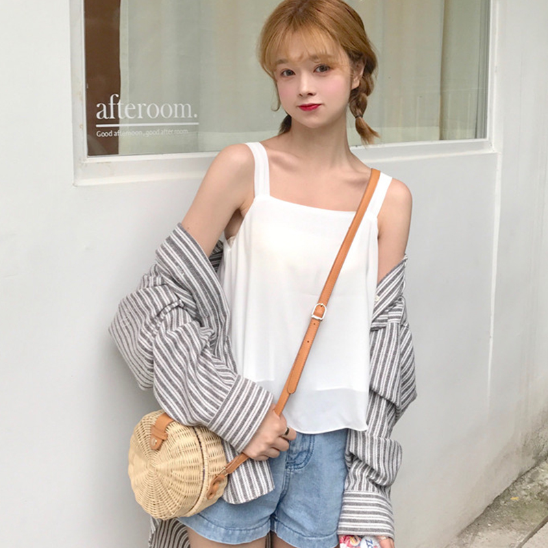 / 上衣女夏新款韓版女裝百搭無袖雙層雪紡衫露肩顯瘦純色吊帶小背心