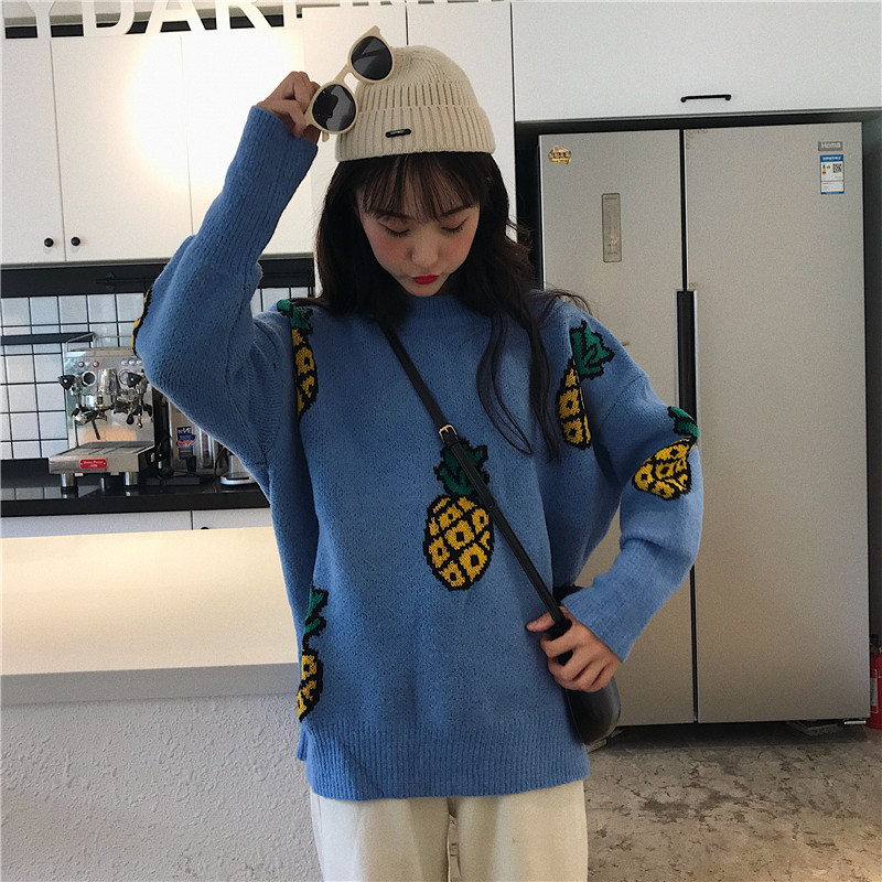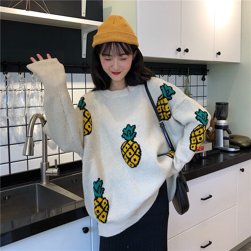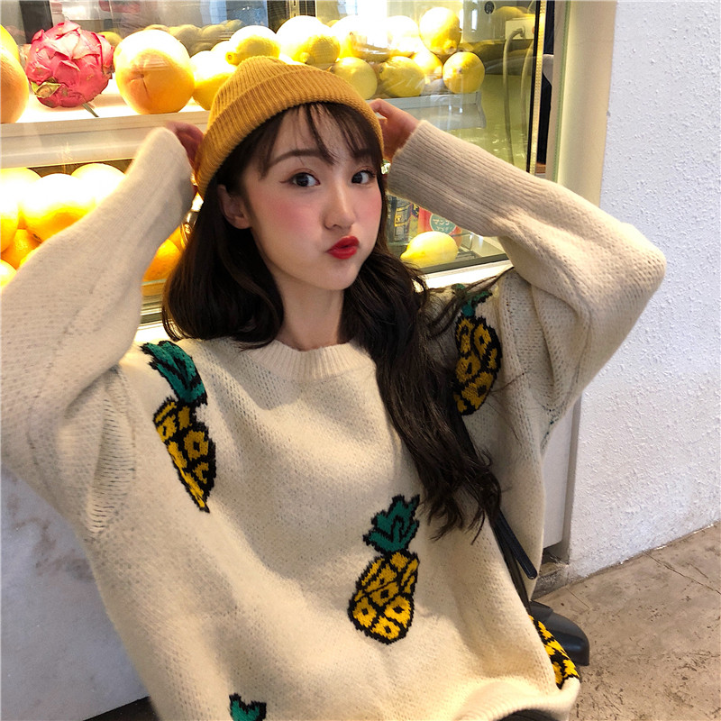 / 秋冬韓版寬松慵懶風小清新菠蘿套頭網紅超火針織衫毛衣上衣外套女