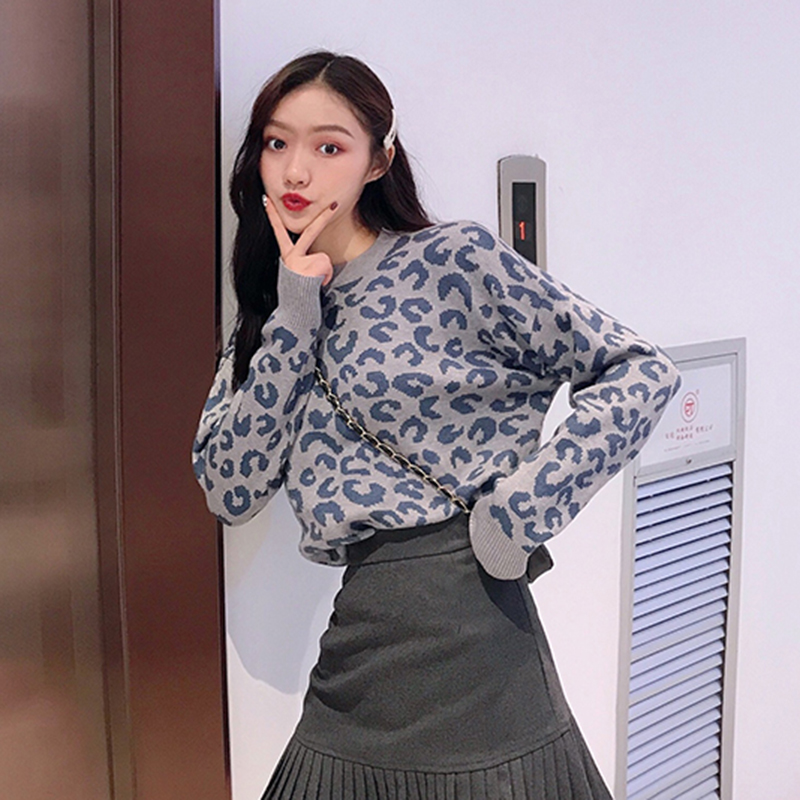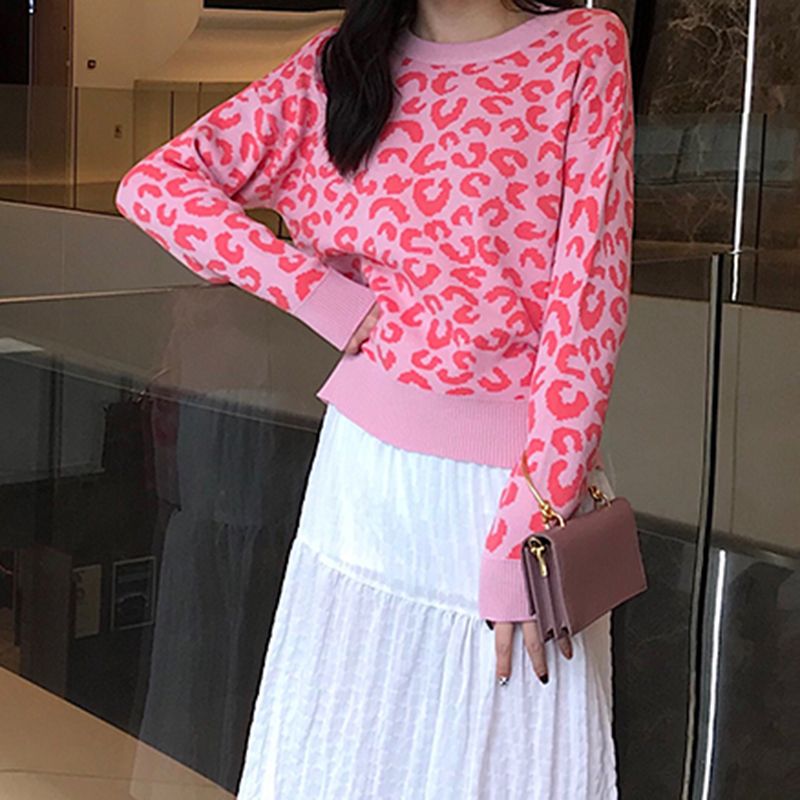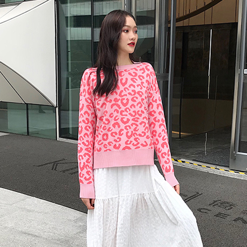 慵懶風套頭毛衣外套女秋冬裝2018新款韓版時尚寬松豹長袖針織衫潮