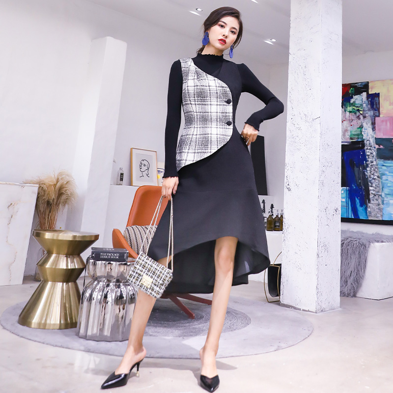 針織連衣裙早秋裝女2018新款時尚拼接背帶裙子兩件套裝氣質秋冬季