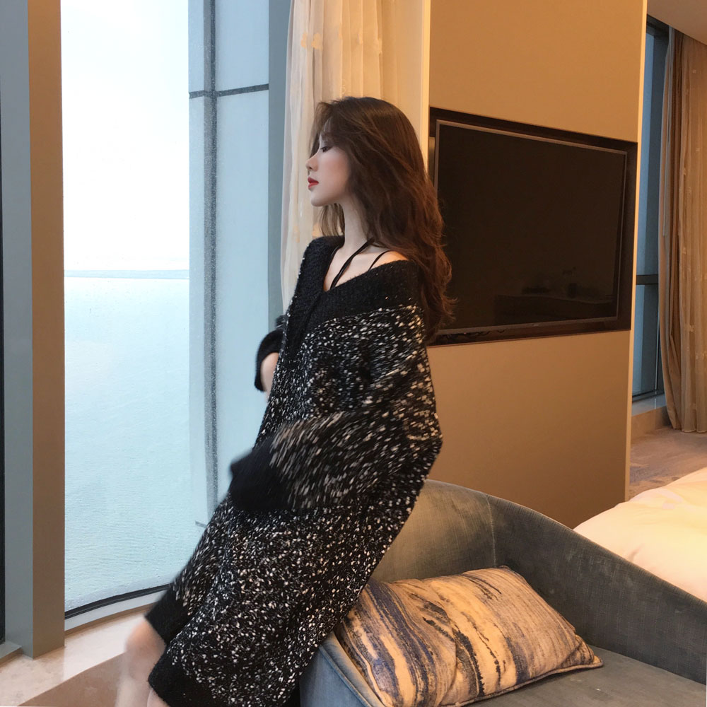 / 港味復古慵懶風套頭毛衣女2018新款秋加厚長款針織毛衣裙連衣裙女