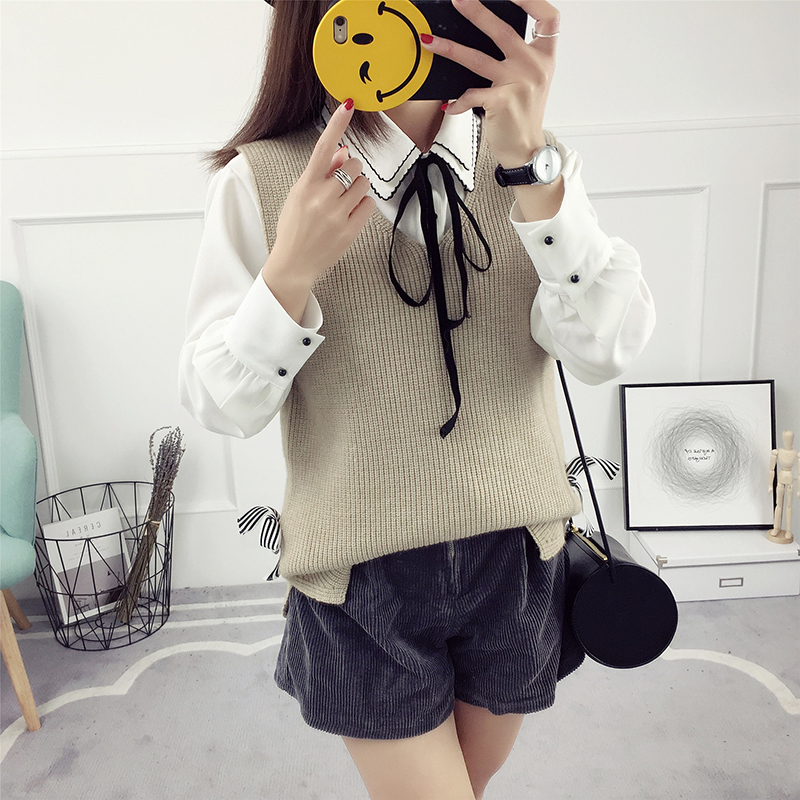 / 春裝毛衣馬甲女韓版V領短款寬松顯瘦套頭毛線衣百搭春秋針織背心