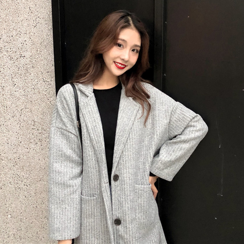 / 港味復古毛呢外套女2018新款學生寬松中長款過膝開叉休閑長袖大衣