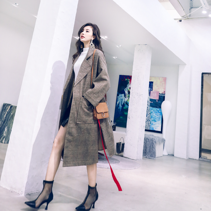 名媛氣質2018新款秋冬網紅大衣女中長款格子韓版西裝復古毛呢外套