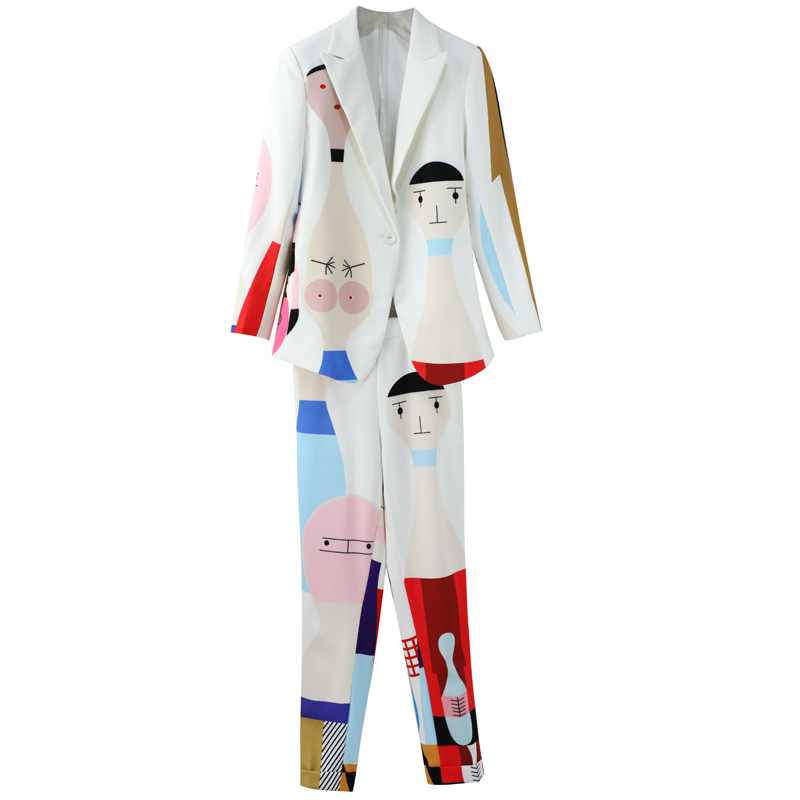 印花西裝套裝女初秋裝2018新款時尚氣質顯瘦小腳褲復古港味兩件套