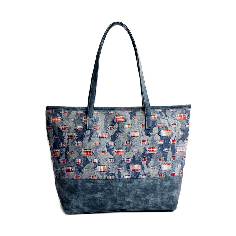 新款女包帆布包牛仔布拼接單肩包韓版簡約大包包休閑手提包潮
