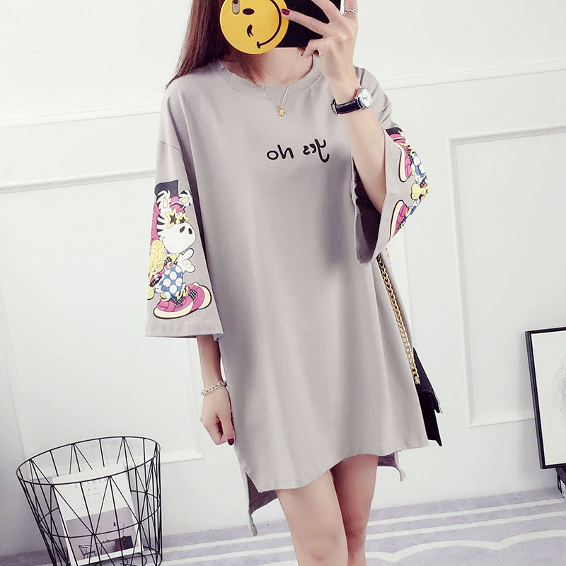 / 夏裝新款韓版百搭學生寬松上衣服中長款t恤女印花中袖打底衫
