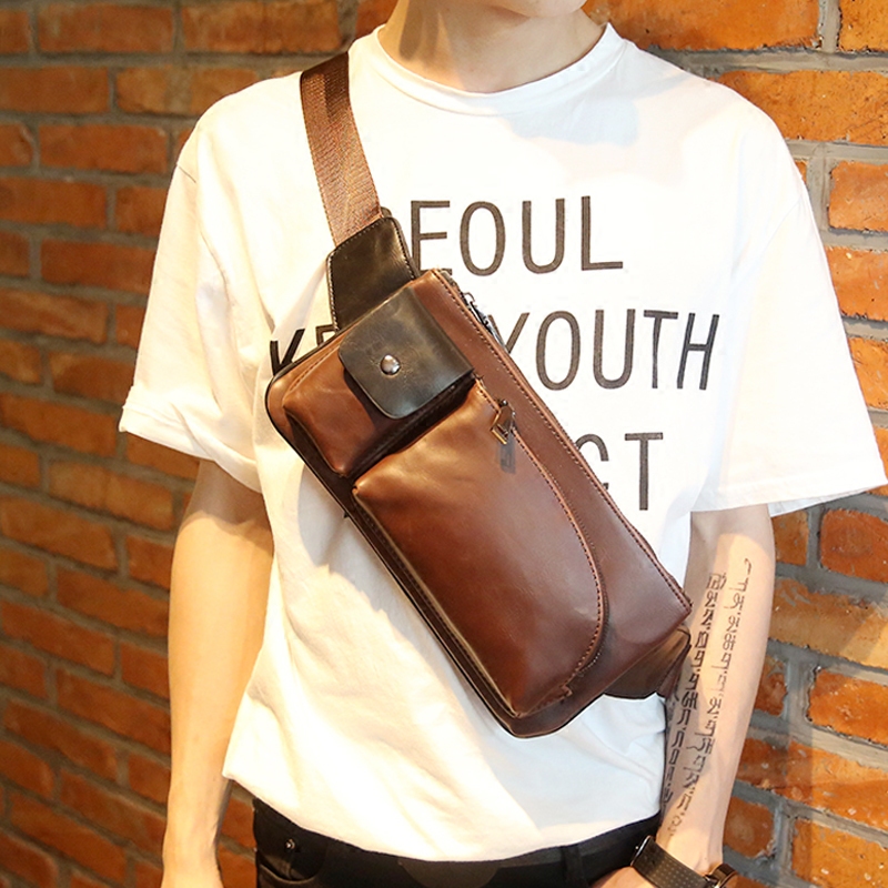 新款單肩包男士復古胸包斜挎包運動小包休閑腰包韓版男包潮