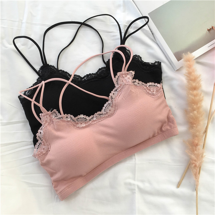 / 夏季韓版蕾絲邊抹胸防走光聚攏文胸美背裹胸吊帶背心內衣上衣女士
