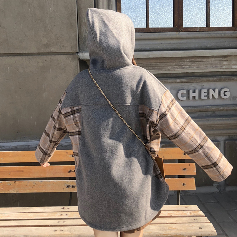 / 秋冬女裝2018新款學生格子假兩件衛衣寬松長袖連帽外套時尚上衣潮