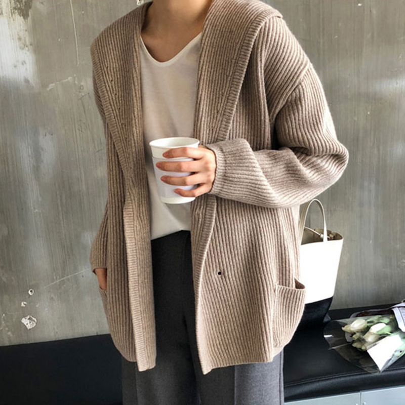 慵懶寬松毛衣女秋冬裝2018新款純色針織開衫學生時尚長袖外套上衣