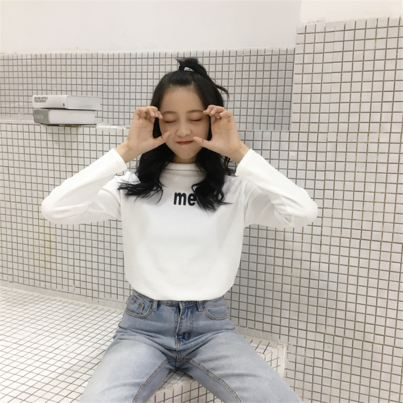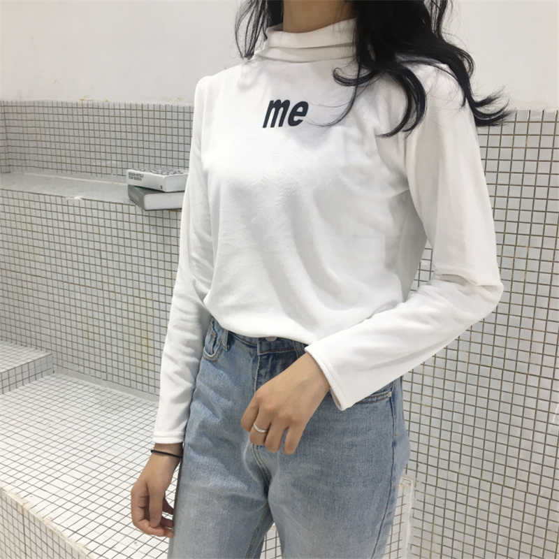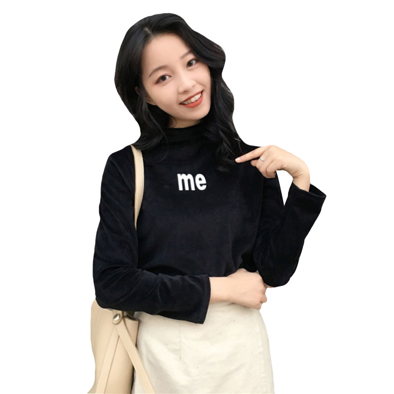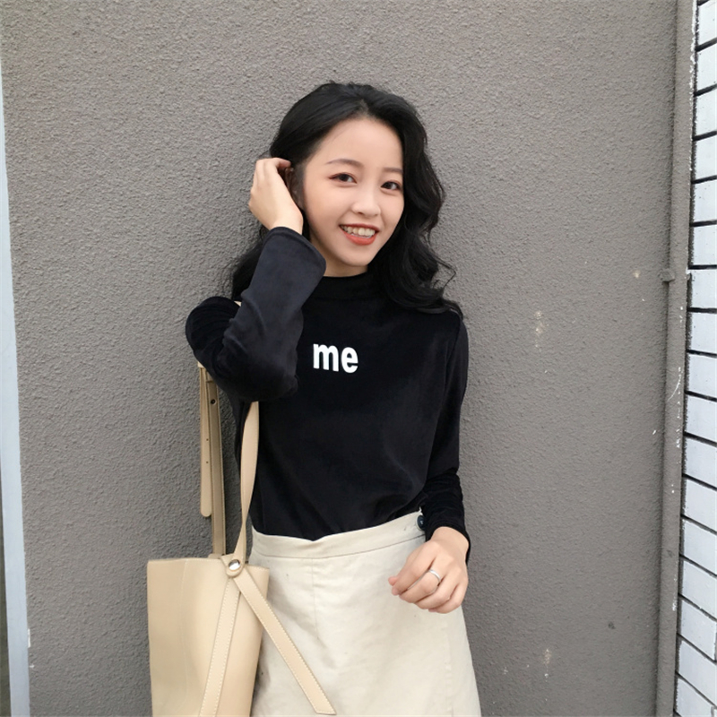秋冬女裝韓版chic絲絨半高領字母修身顯瘦長袖打底衫t恤上衣學生