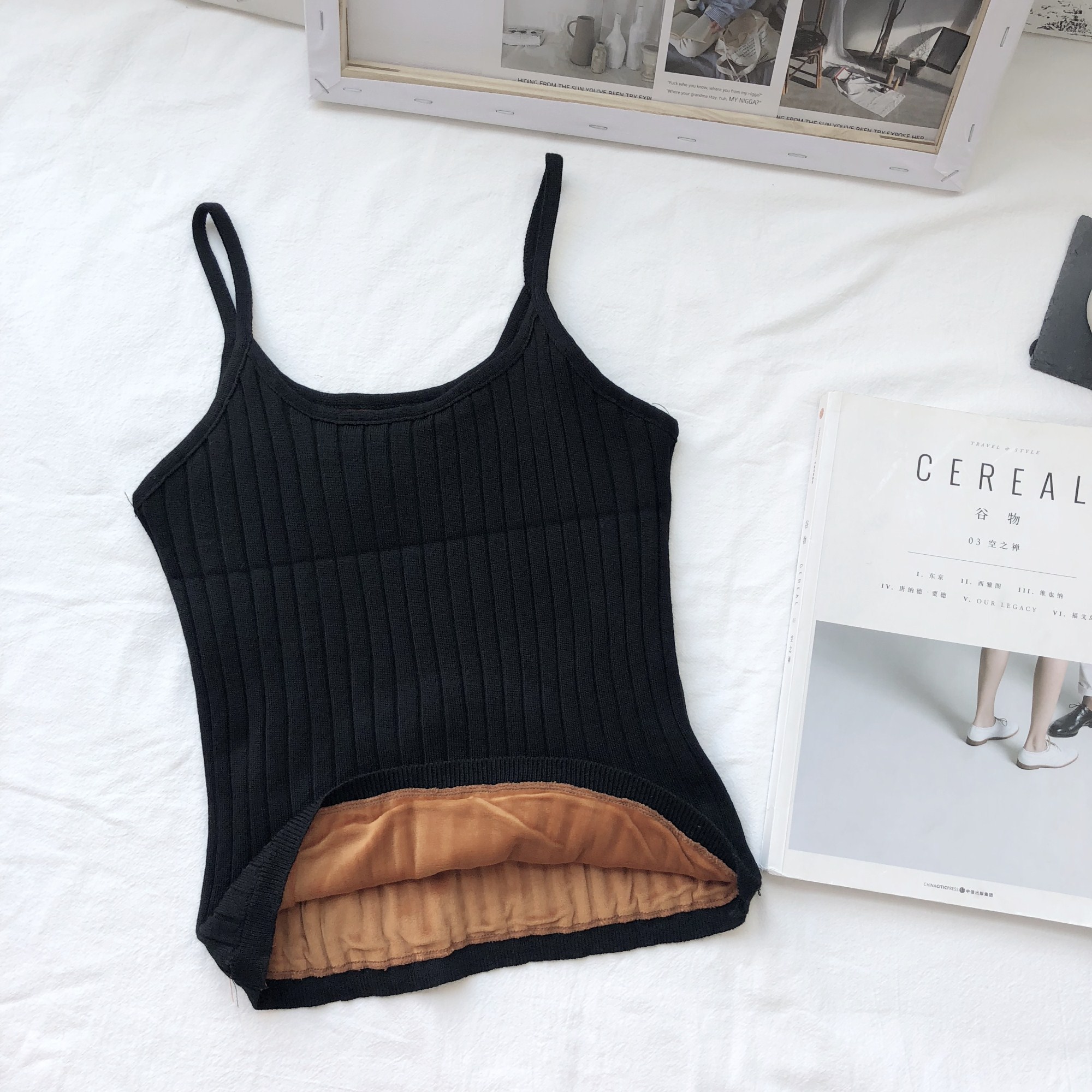 / 秋冬韓版加絨加厚內搭吊帶背心修身顯瘦彈力保暖打底衫內衣上衣女