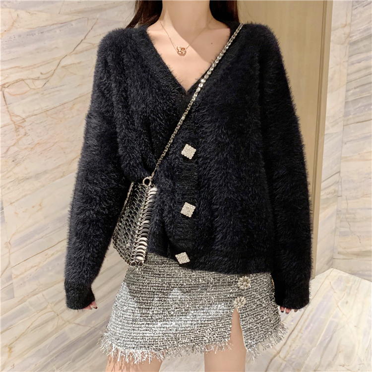 2018秋冬慵懶風寬松毛衣開衫小香風銀絲半身裙韓版時尚套裝兩件套