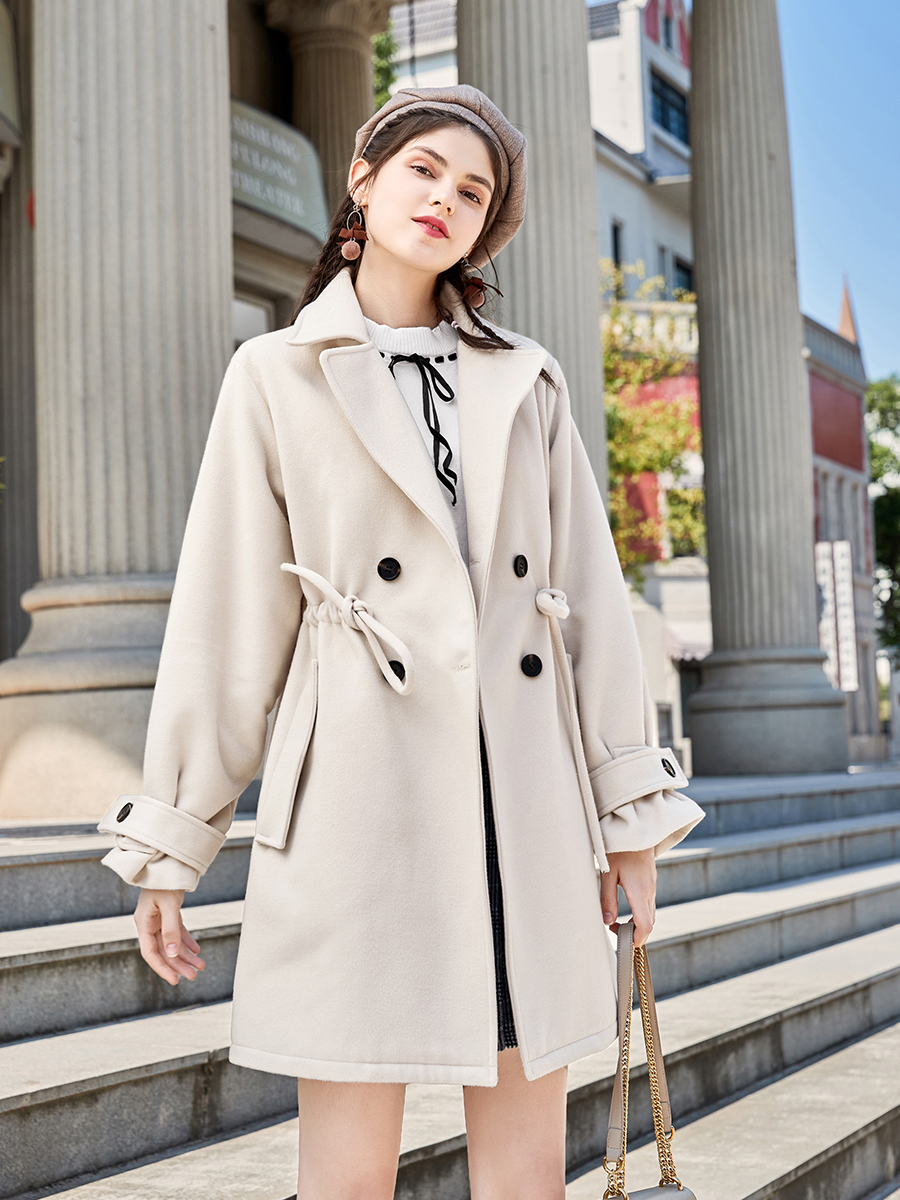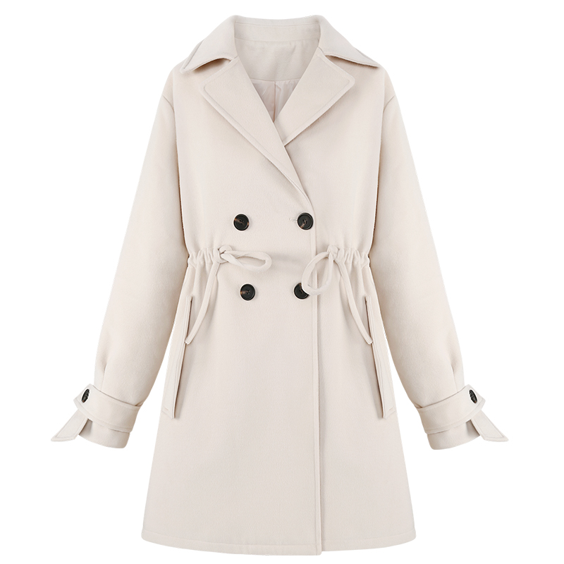 MG小象2018流行大衣女中長款冬季新款韓版寬松學生收腰毛呢外套潮