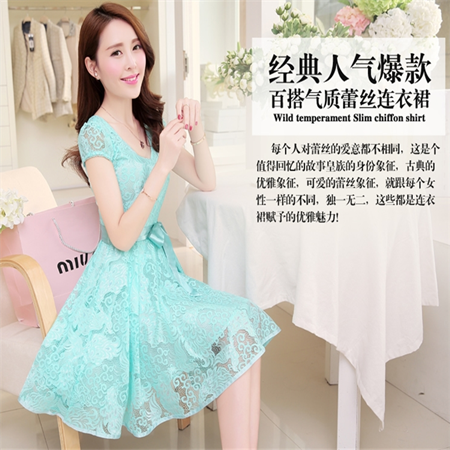 / 夏裝新款 韓版修身淑女連衣裙 中長款蕾絲雪紡公主裙時尚女裝