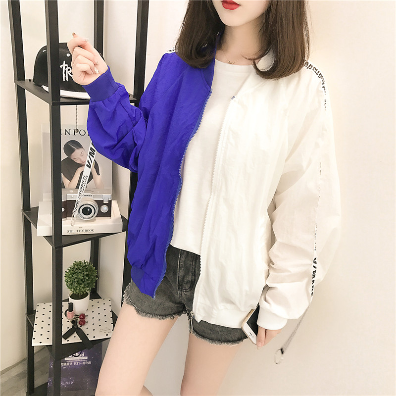 女款防曬衣2017新款韓版原宿學院風寬松bf拼色長袖休閑外套女春秋