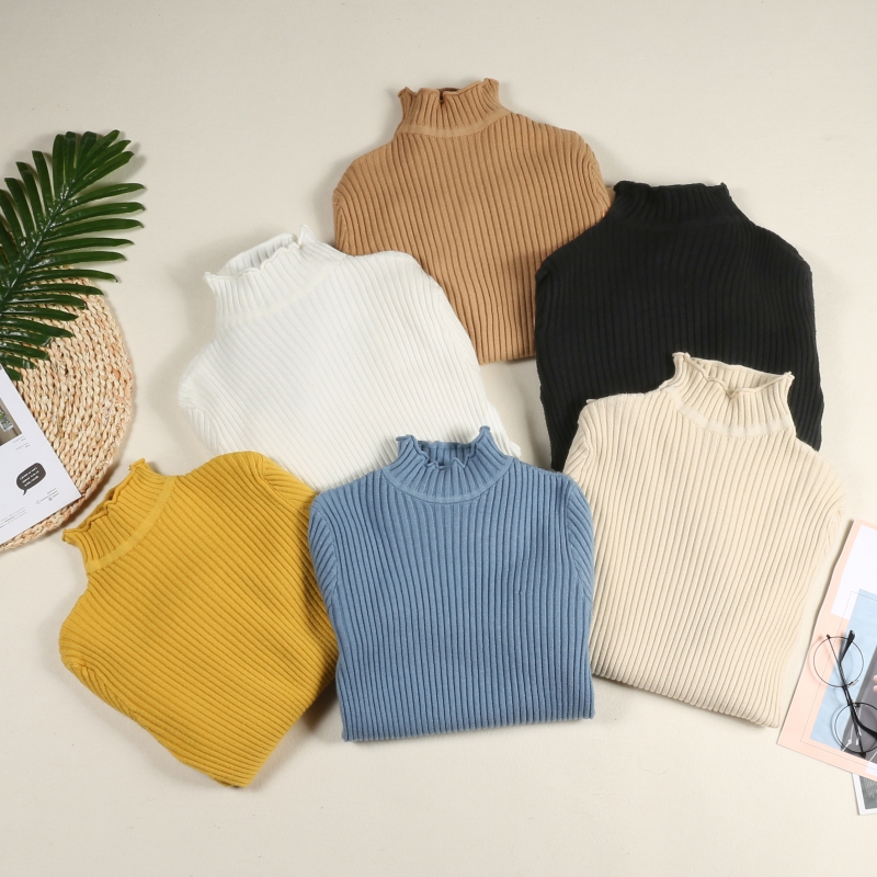 / chic早秋毛衣慵懶風喇叭袖半高領加厚套頭長袖針織衫打底衫毛衣女