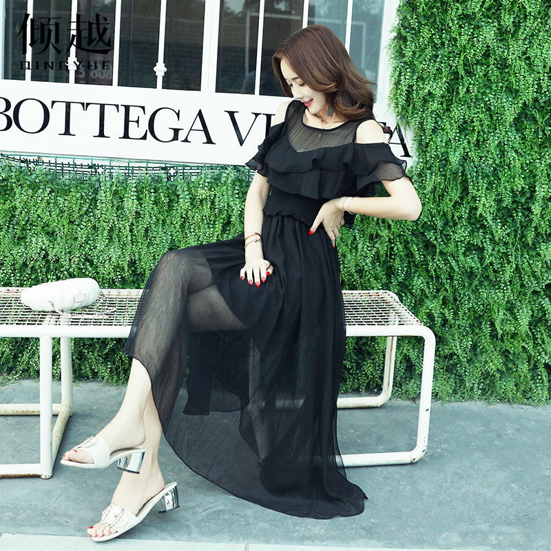 2017夏季新款短袖雪紡連衣裙韓版時尚氣質小清新長裙顯瘦柔美裙子