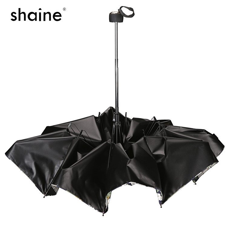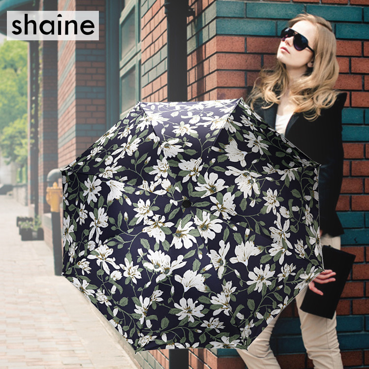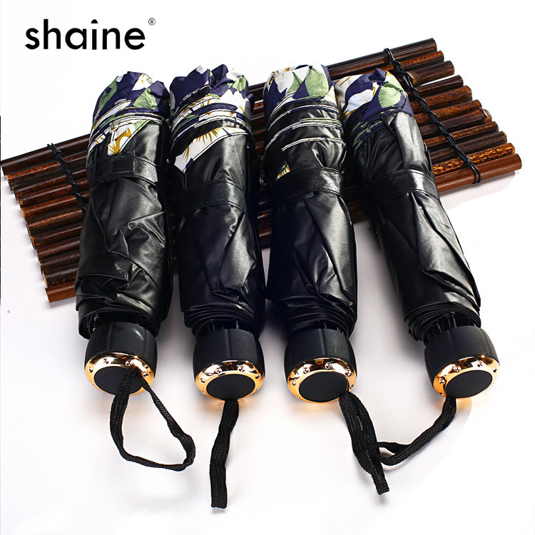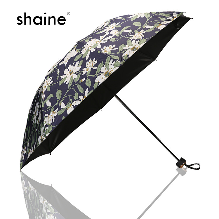 時尚小黑傘三折疊傘黑膠防曬女士學生遮太陽傘晴雨傘