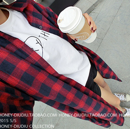 / 韓國原宿風bf格子襯衫春秋季女裝韓版寬松百搭連帽薄款學生外套潮