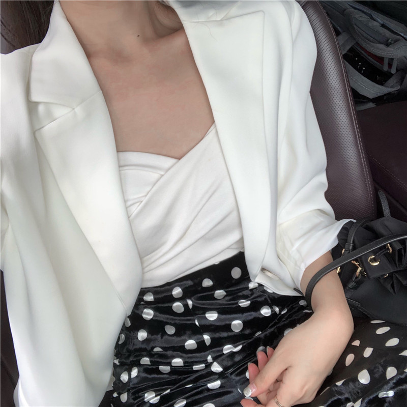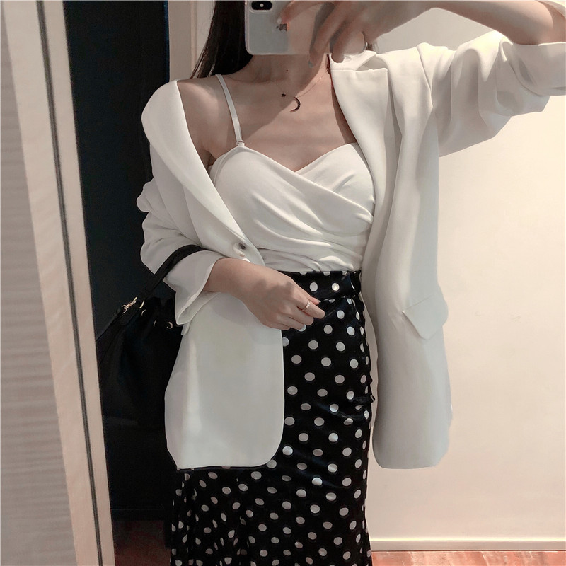 / 西裝外套休閑時尚秋款吊帶墊肩港風新款韓版氣質套裝chic兩件套女