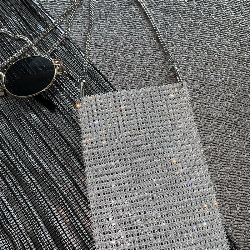 / 新款韓版網紅風百搭閃閃單肩斜跨手機包休閑亮鉆女包時尚鏈條小包