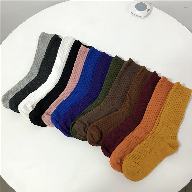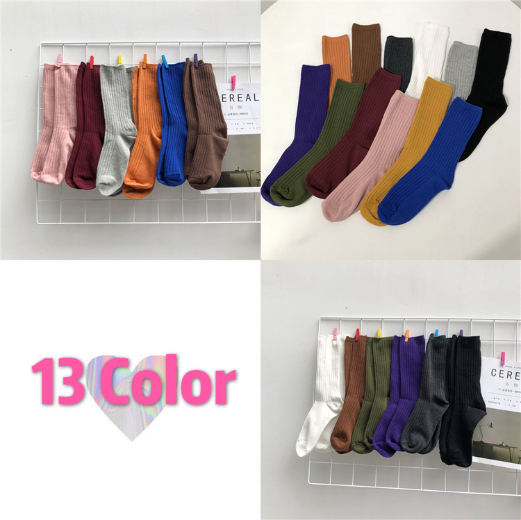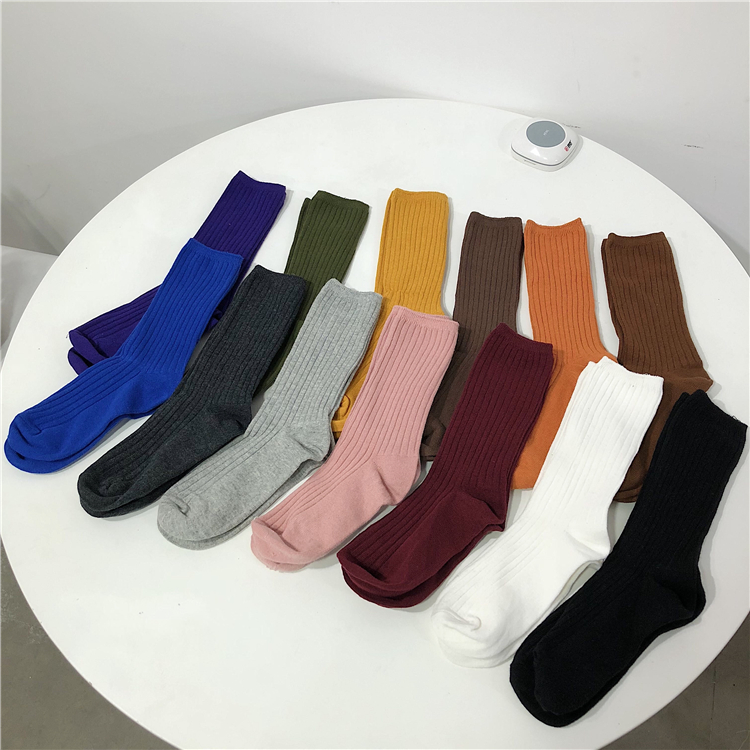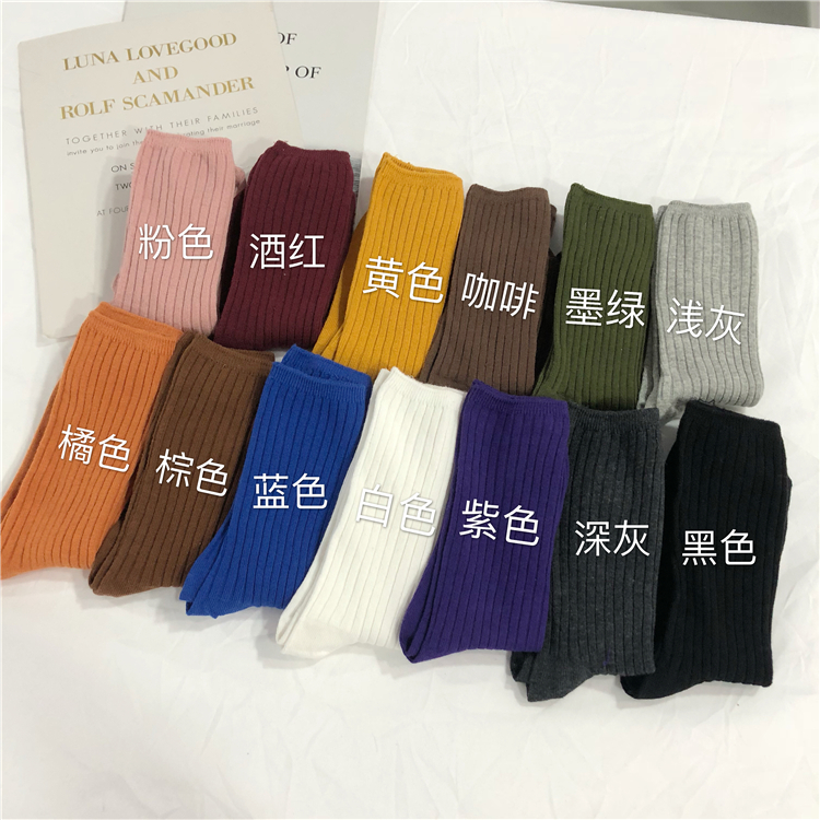 2018新款韓版學院風日系糖果多色堆堆襪女學生簡約純色中筒襪襪子