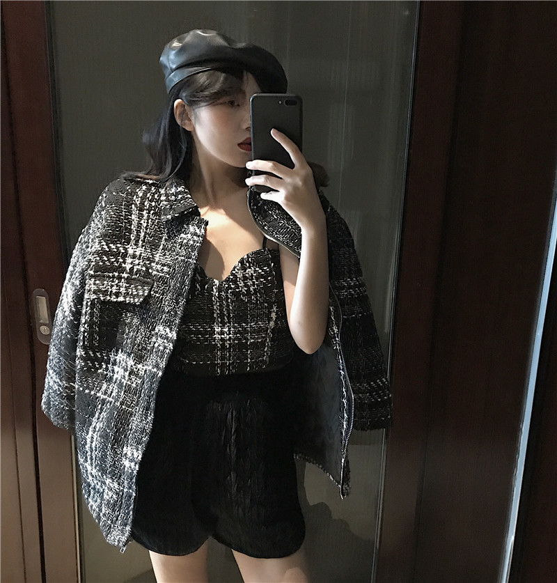 / 秋冬新款韓版修身打底背心長袖百搭粗花呢外套時尚小香風套裝女潮