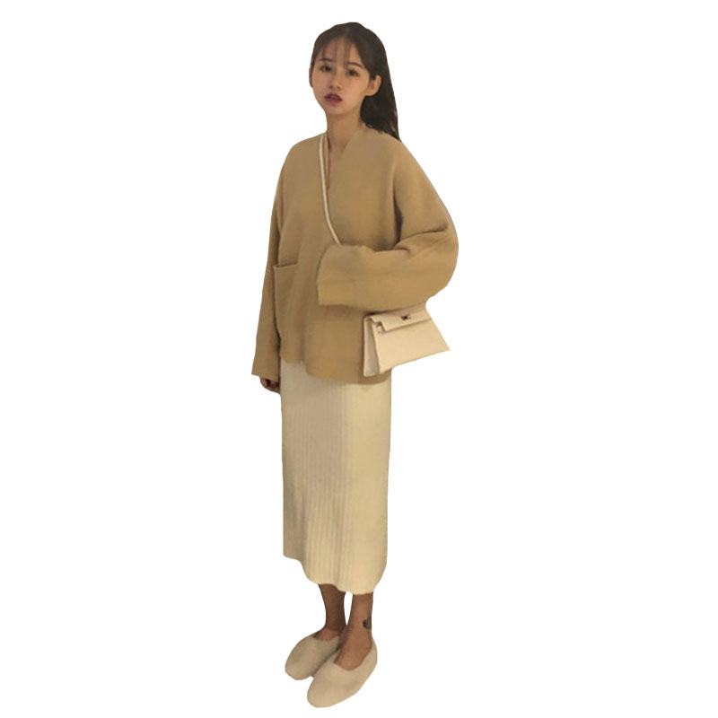 / 韓版時尚休閑套裝秋季仿鹿皮絨衛衣外套+開叉半身裙長裙兩件套女