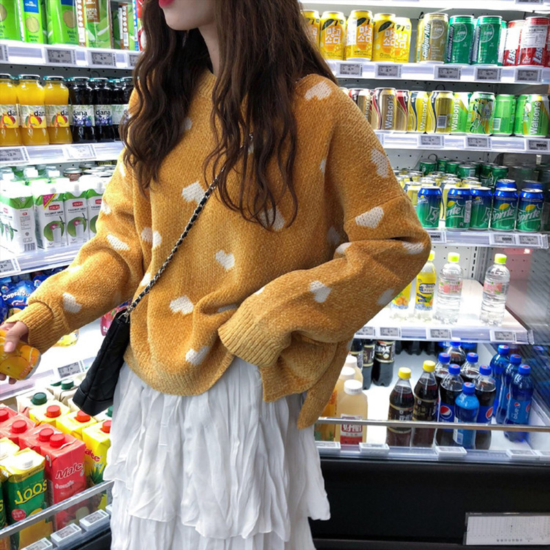 慵懶風套頭毛衣外套女秋冬裝2018新款韓版學生寬松長袖愛心針織衫