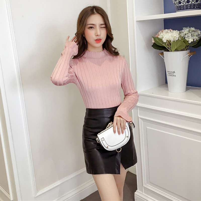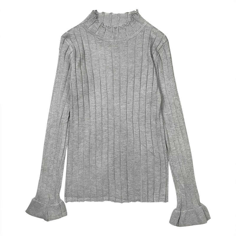 / 韓版秋裝新款修身喇叭長袖打底衫女學生波浪邊半高領針織毛衣上衣